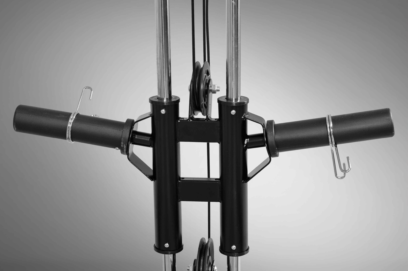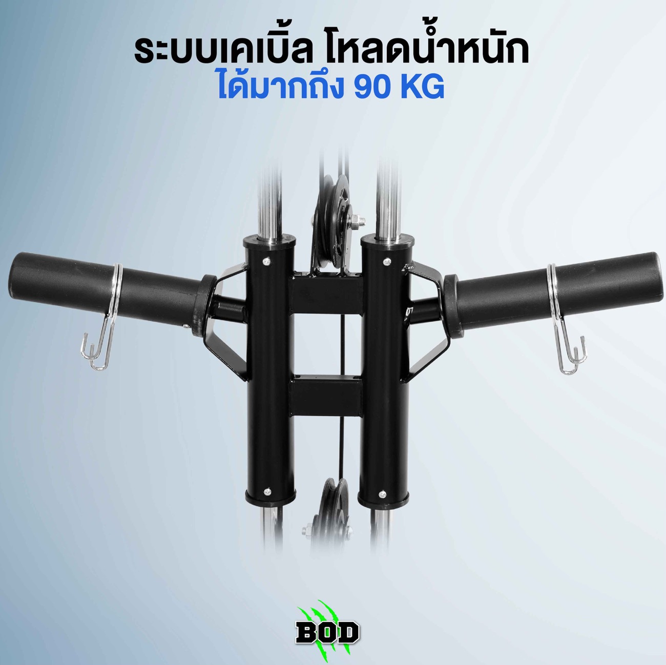 (2) เคเบิ้ล 2 จุดบนล่าง – เป็นอีกระบบที่สามารถใส่แผ่นน้ำหนักได้เท่าที่ต้องการ สามารถใช้เล่น หลังแบบ LAT-PULL DOWN และท่าอื่นได้อีกมากมาย ตามแต่ประยุกต์