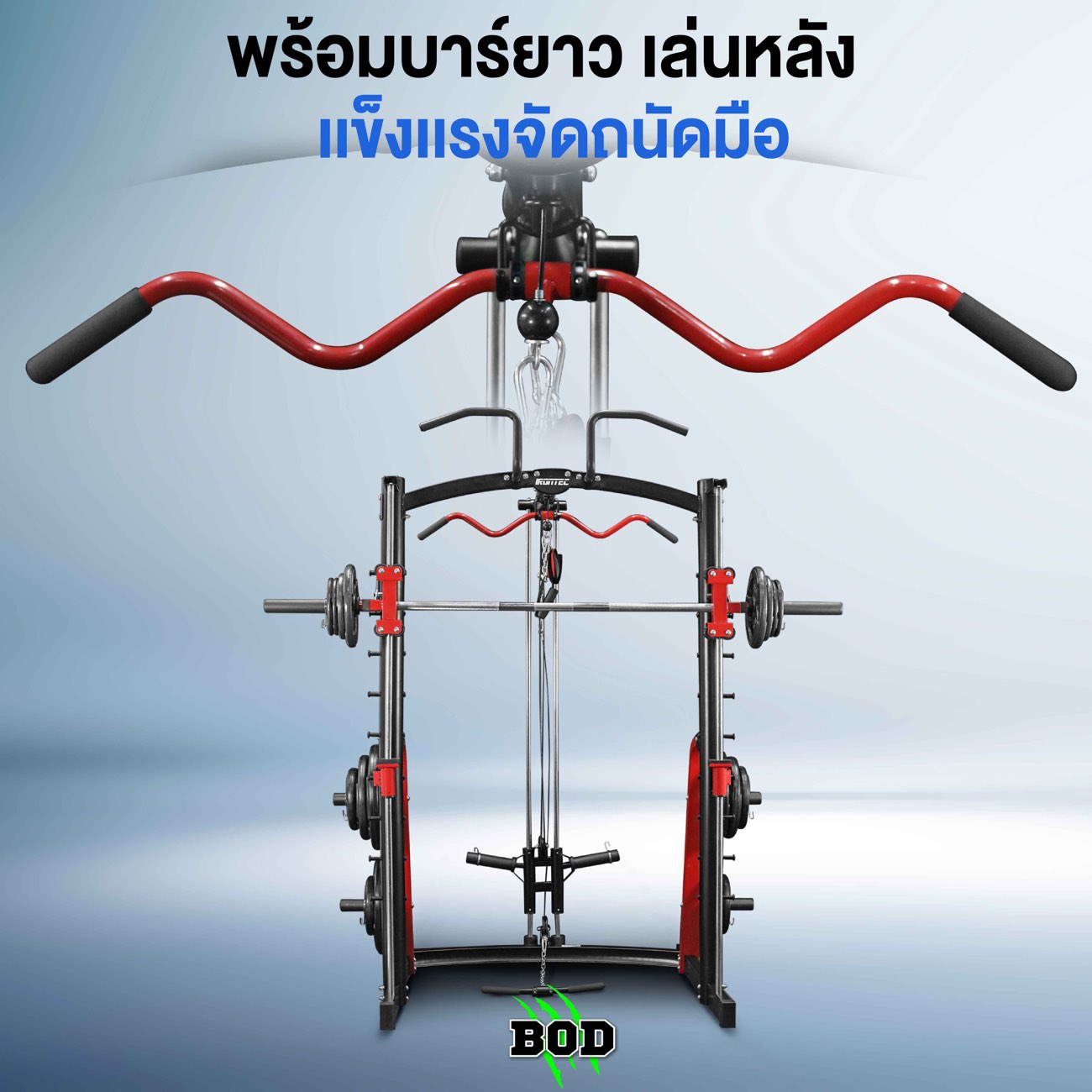 เพราะว่าสมิท แมชชีน รุ่น BLACK™ สามารถใช้เล่นกล้ามได้ “ทุกส่วน” เพราะมันมี 3 ระบบใน 1 เครื่อง (1) ที่เล่นบาร์เบล (2) ที่เล่นเคเบิ้ล (3) ที่เล่นบาร์โหน