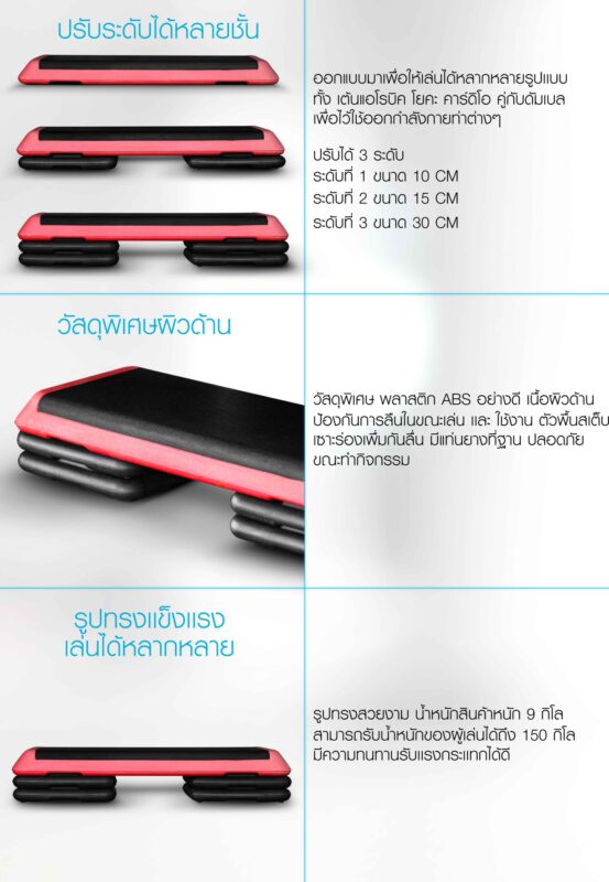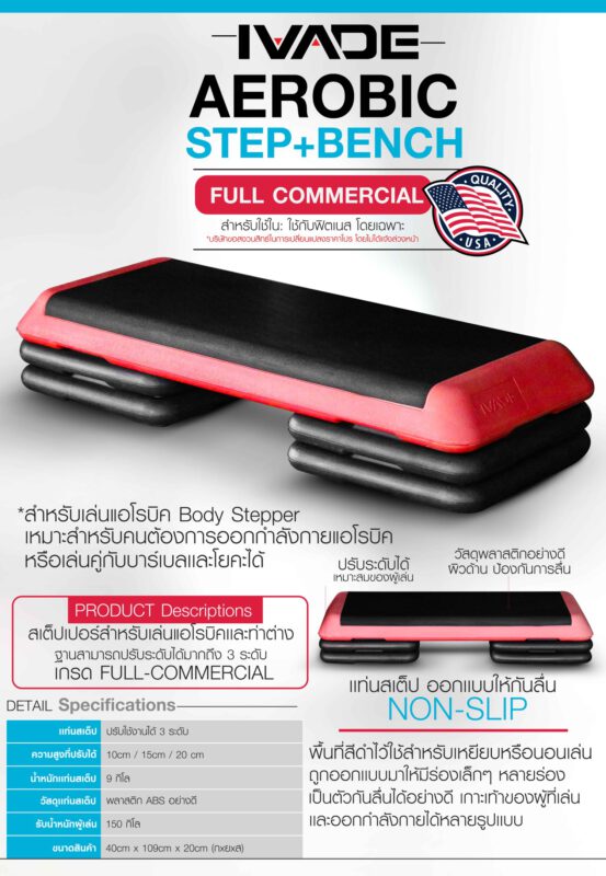 แท่นสเต็ป แอโรบิค (AEROBIC STEPPER) ใช้ออกกำลังกายแบบ แอโรบิค ปรับระดับความสูงได้ 3 ระดับ สามารถใช้เป็น WEIGHT BENCH เล่นกับดัมเบลได้