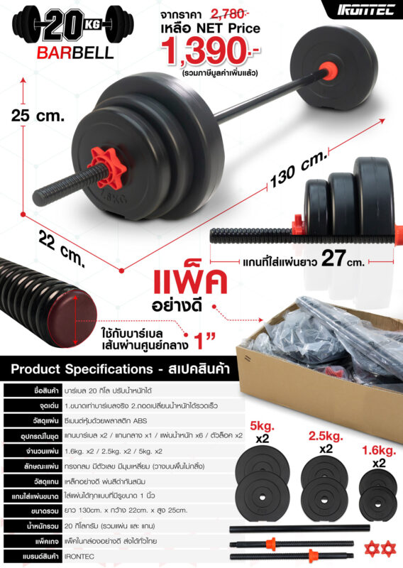 ดัมเบล BOD® รีวิว ชุด บาร์เบล 20 กิโล