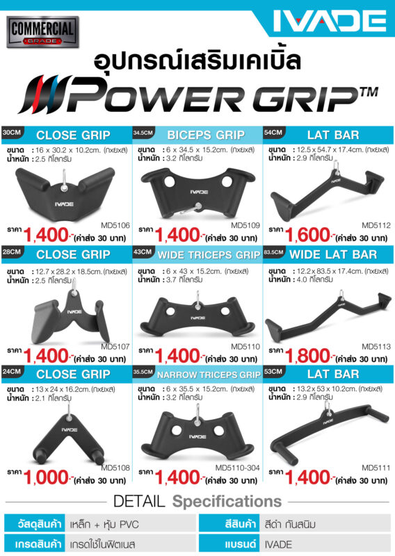 POWER GRIP™ Biceps Grip ขนาด 34.5cm วัสดุ เหล็กหุ้ม PVC เกรดฟิตเนส น้ำหนัก 3.2 กิโล ขนาดสินค้า 6×34.5×15.2cm (ค่าส่ง +30 ต่อชิ้น)