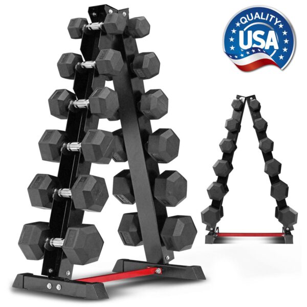 ดัมเบล HEX หุ้มยาง 6 คู่ (2.5-15KG) รวม 105กิโล พร้อมขาตั้งทรง A
