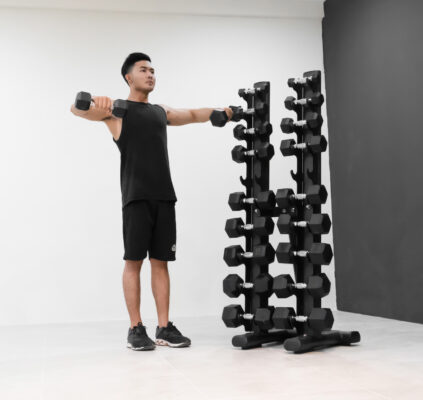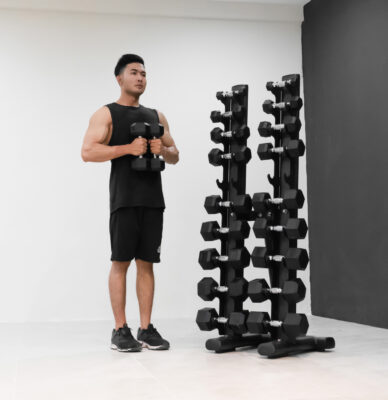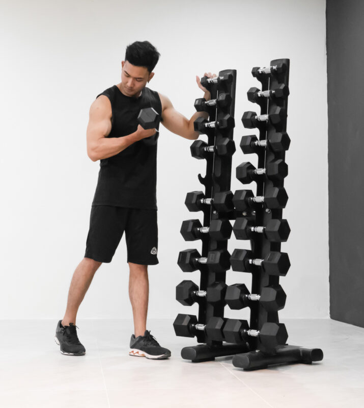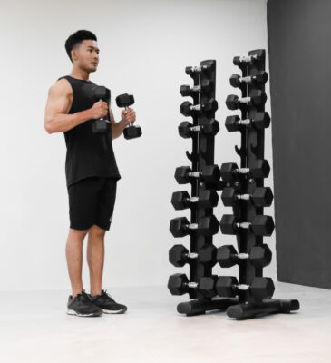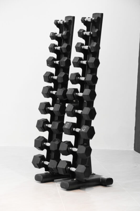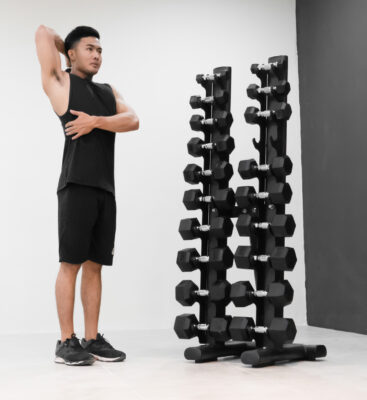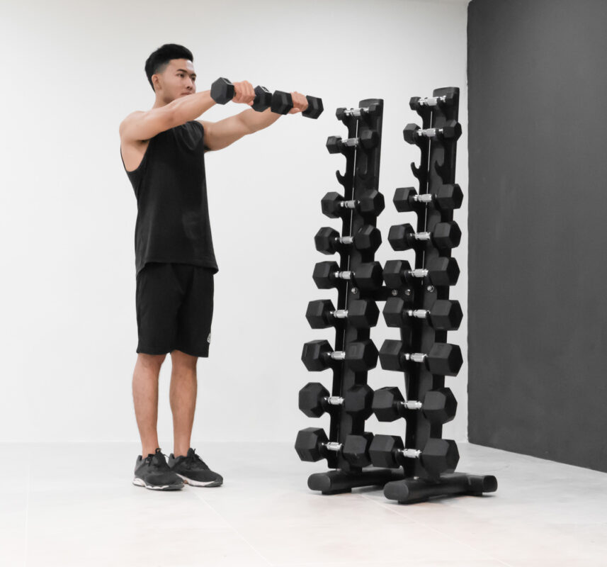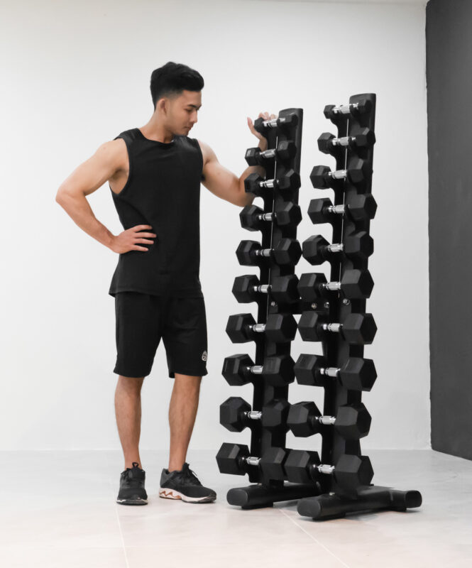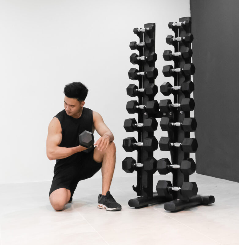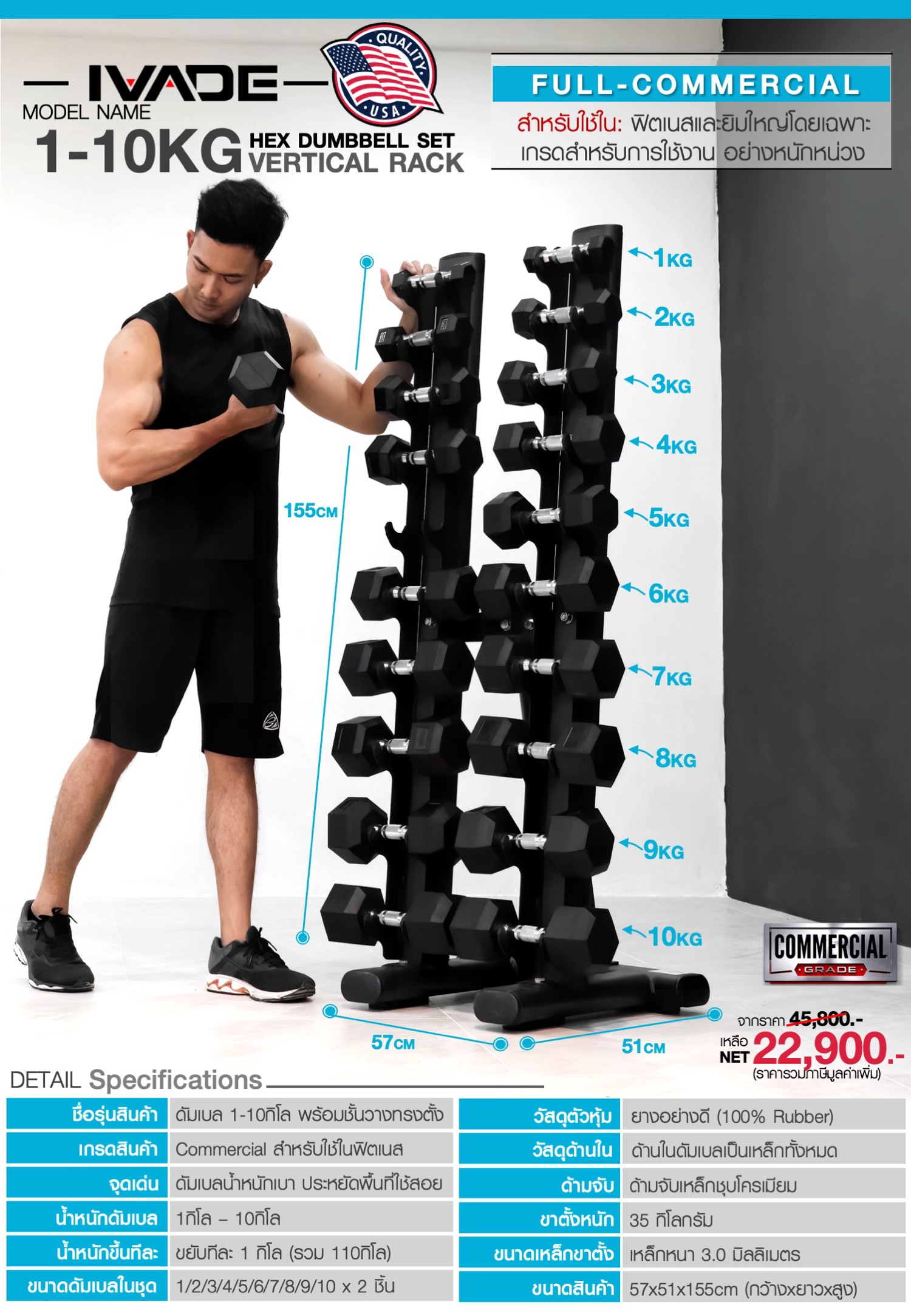 ชุดดัมเบล IVADE HEX + ชั้นวางอย่างดี 1-10 กิโล Commercial สำหรับใช้งานในฟิตเนส หุ้มด้วยยางอย่างดี (Rubber) ด้านในดัมเบลเป็นเหล็กทั้งหมด