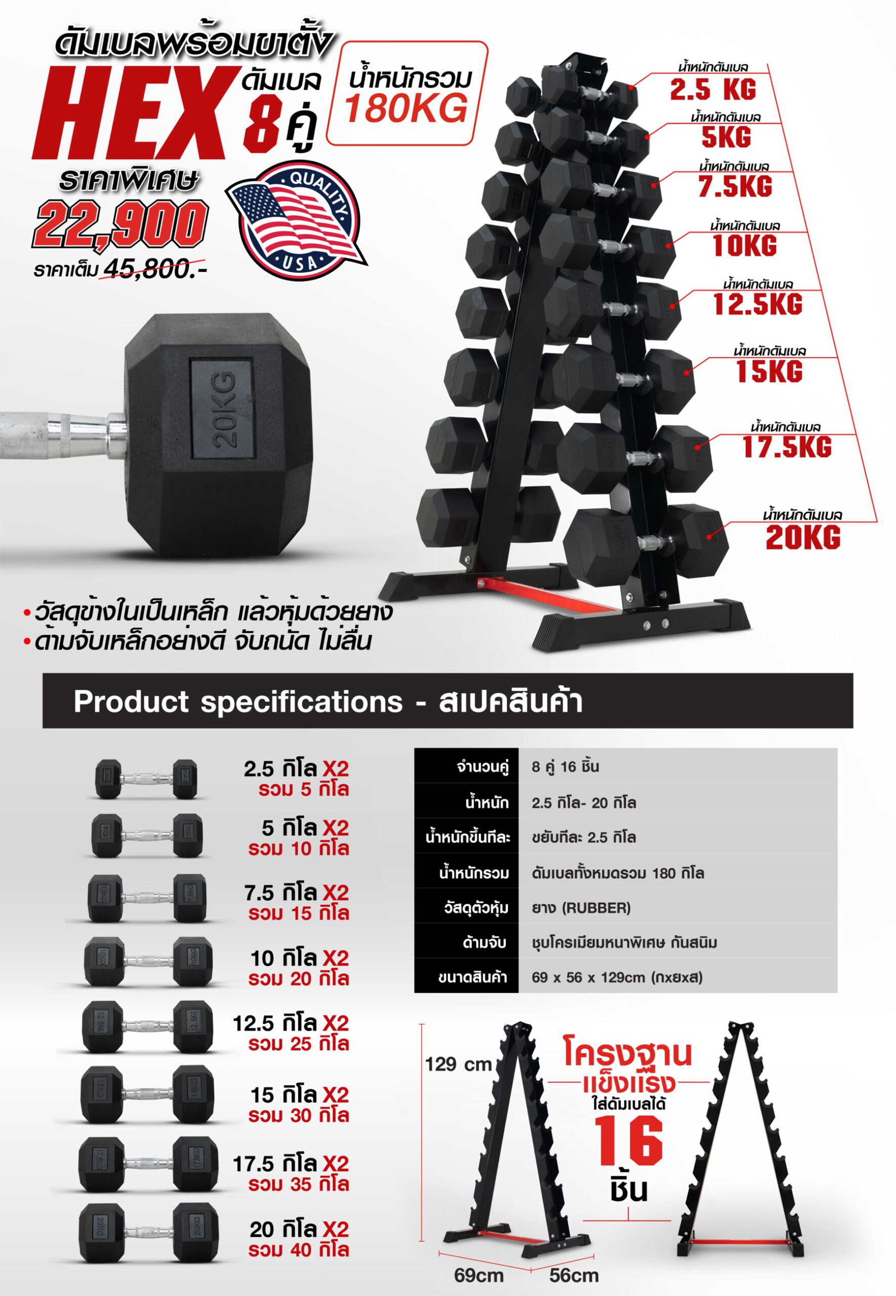 ชุดเดียวจบ พร้อมใช้งานตั้งแต่น้ำหนักเบา 2.5 กิโล ถึง น้ำหนักมาก 20 กิโล (ต่อคู่) แนะนำรุ่นนี้ (สินค้าขายดี!)