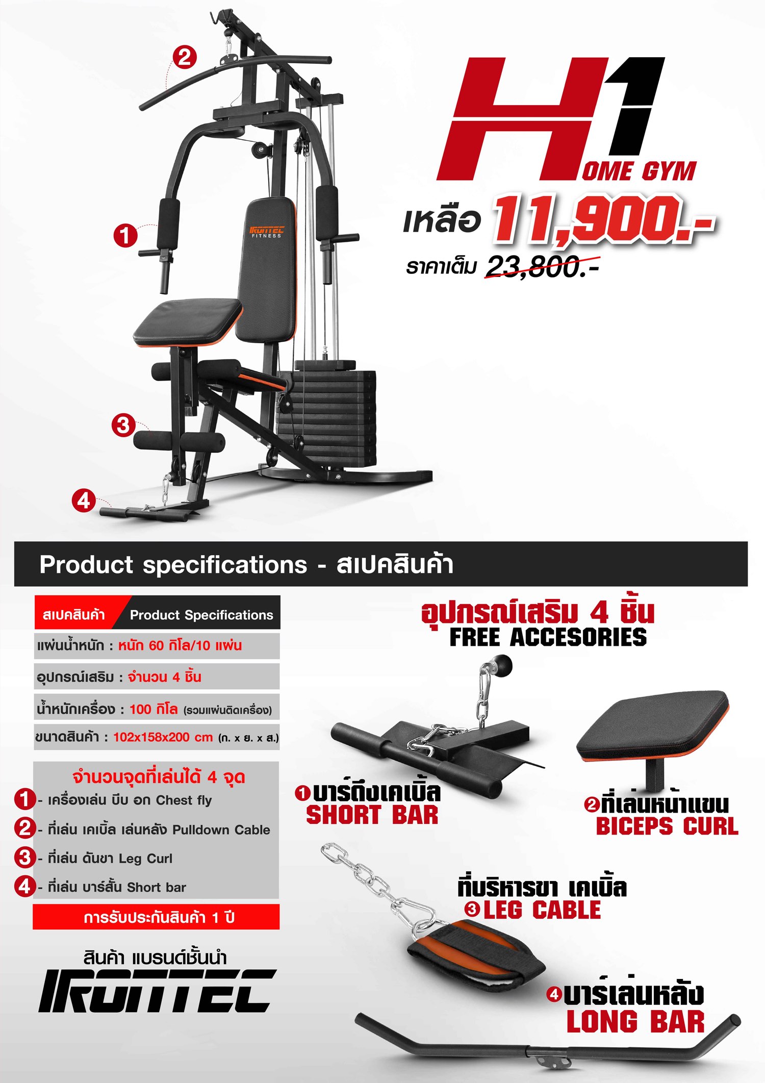 โฮมยยิม (Home Gym) รุ่น H1 แผ่นน้ำหนัก 60 กิโล ปรับได้อย่างรวดเร็วและง่ายดาย เหล็กหนาพิเศษ แข็งแรง ระบบเคเบิ้ล ลูกลอก 10 ตัวเล่นแล้วลื่น เครื่องบริหารที่ทุกบ้านต้องมี ราคาสุดคุ้ม !