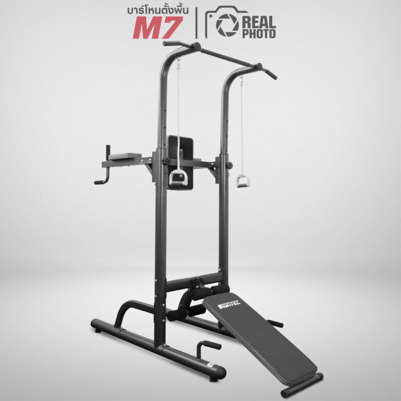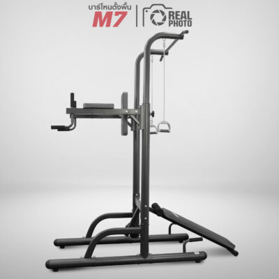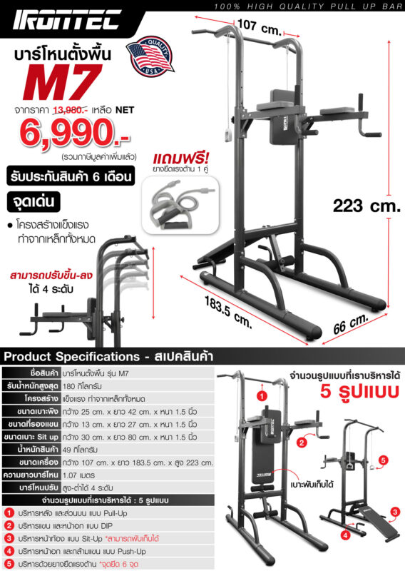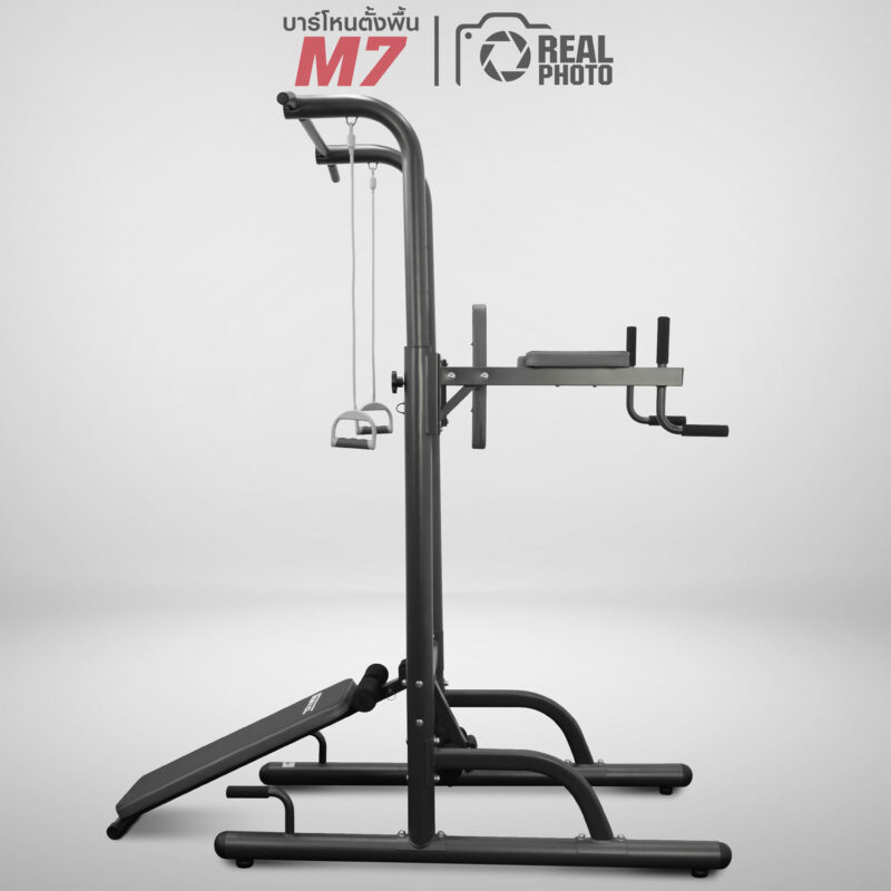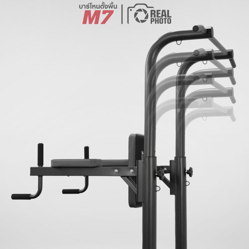 บาร์โหนตั้งพื้น รุ่น M7 โครงสร้างแข็งแรงทำจากเหล็กทั้งหมด รับน้ำหนักได้สูงสุด 180 กิโล บาร์โหนสามารถปรับ ขึ้น-ลง ได้ 4 ระดับ แถมฟรียางยืดแรงต้าน 1 คู่