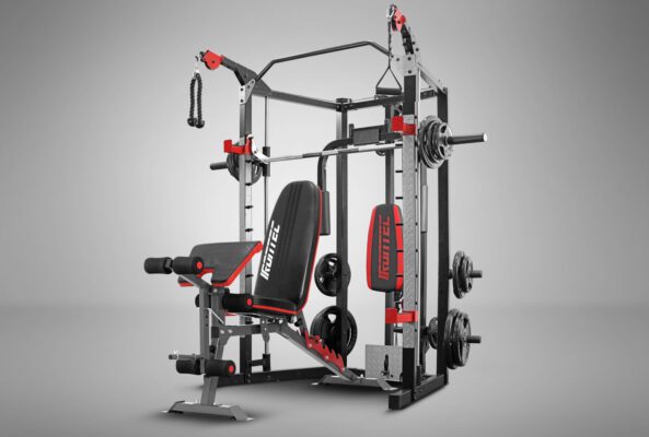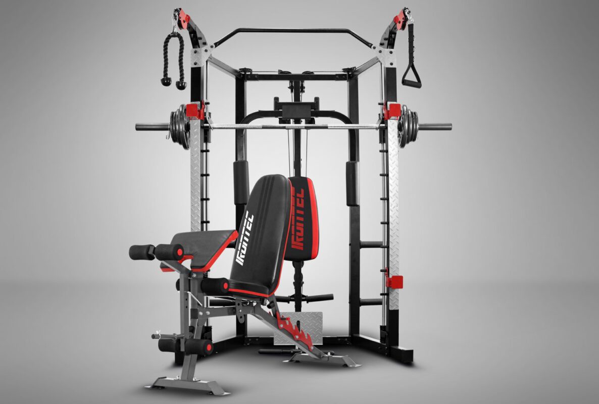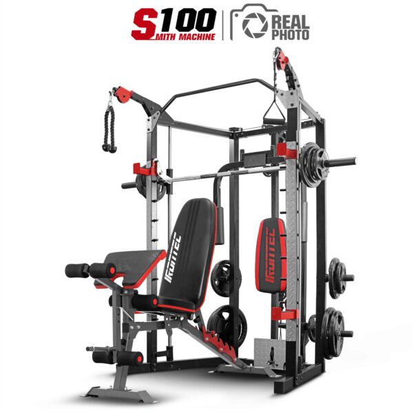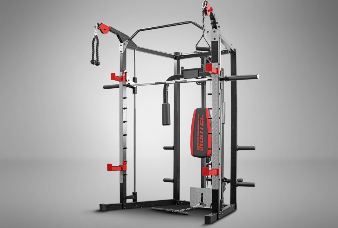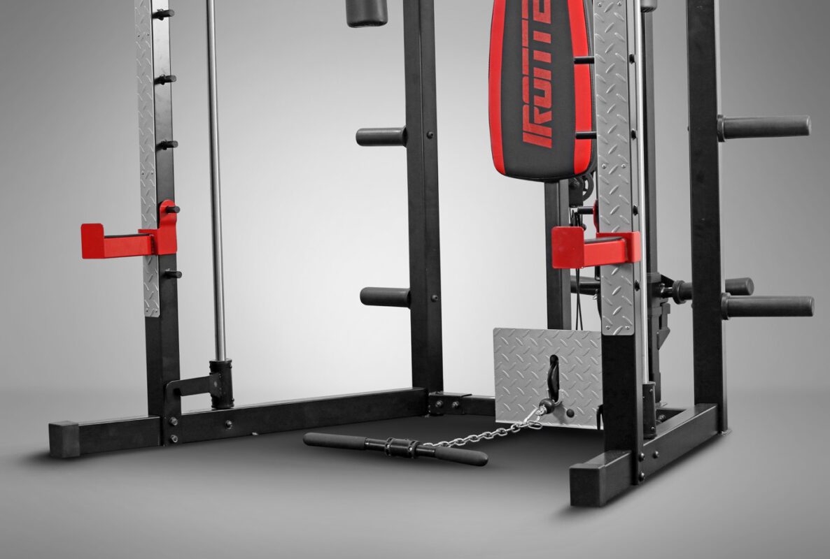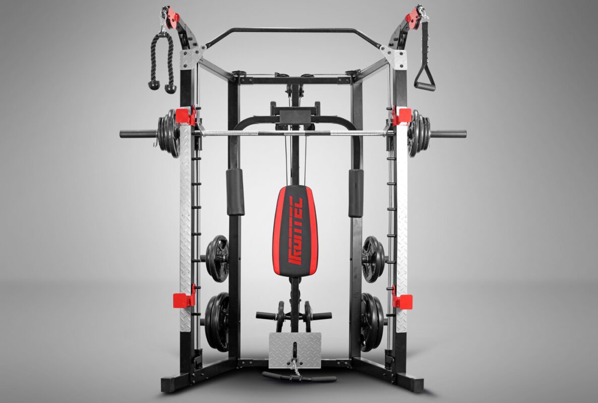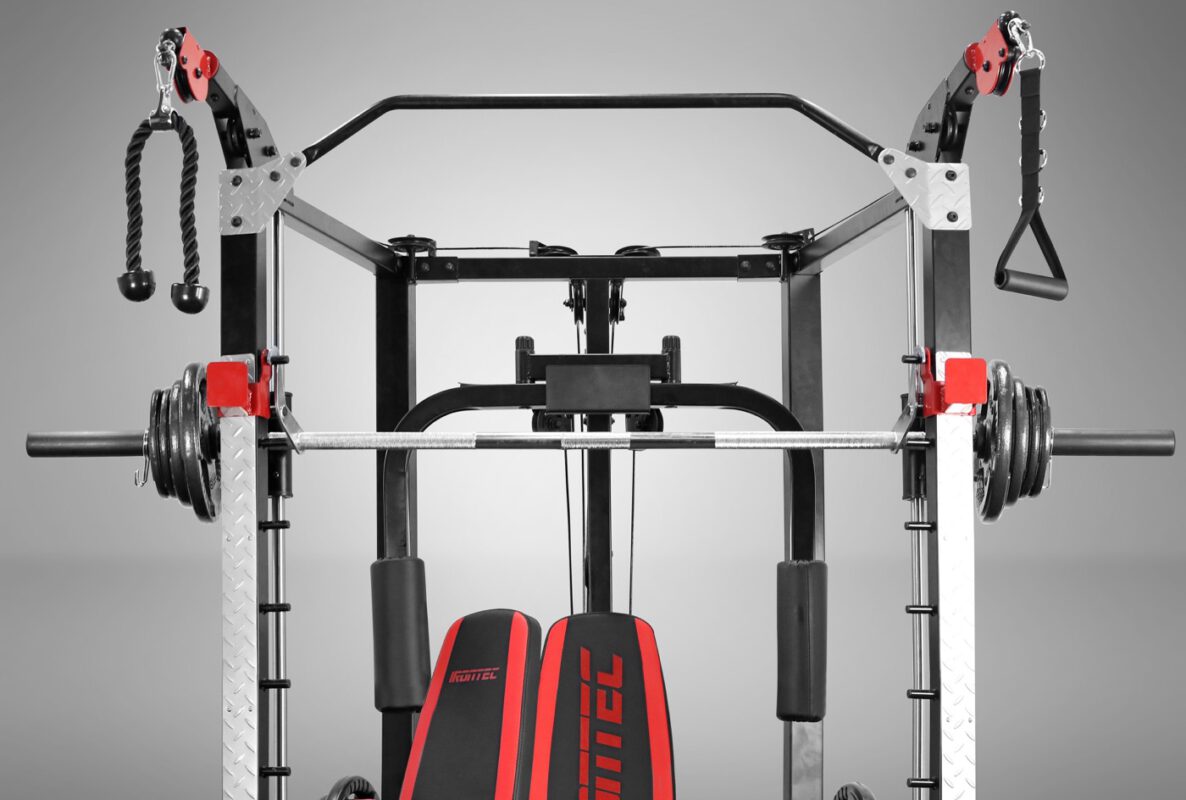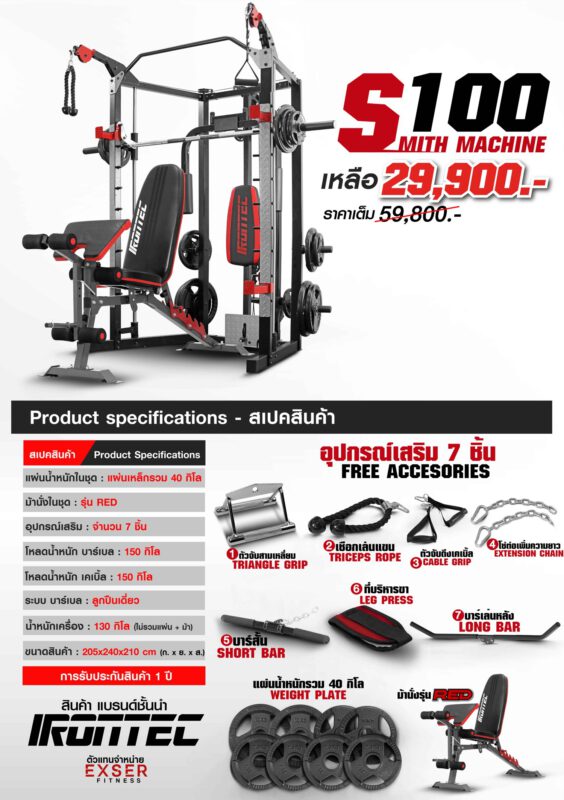 สมิท แมชชีน รุ่น SM50 มี 3 ระบบใน 1 เครื่อง (1) ที่เล่นบาร์เบล (2) ที่เล่นเคเบิ้ล (3) ที่เล่นบาร์โหนใช้สร้างกล้ามได้ ทุกส่วน  อุปกรณ์เสริมครบ