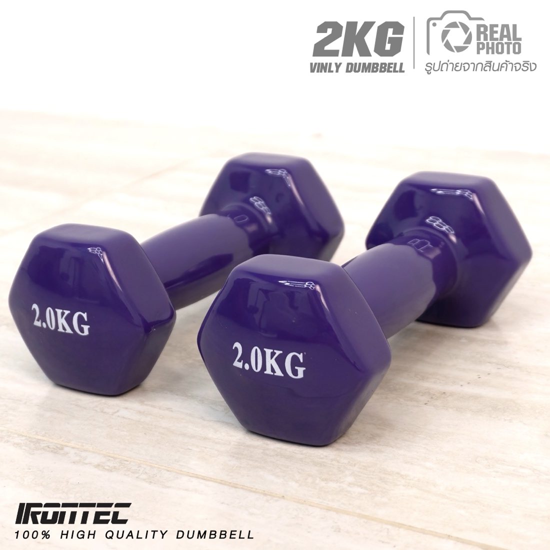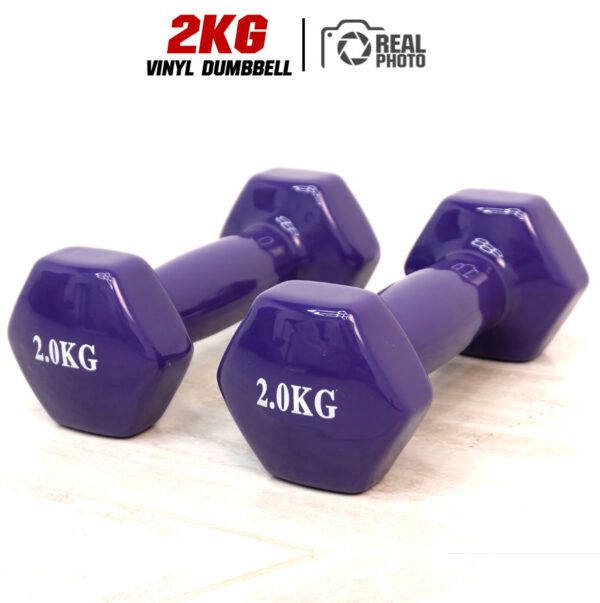 ดัมเบล 2 กิโลกรัม หุ้มยางไวนิล (1 คู่) ทรงหกเหลี่ยม