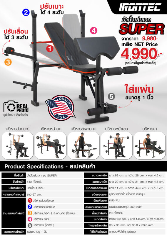 ทาง BOD ได้จัดทำ รีวิวเก้าอี้เล่นเวท รุ่น SUPER อย่างละเอียด ถ่ายจากสินค้าจริง การันตีว่าสินค้าที่คุณจะได้รับนั้นเหมือนในวีดีโอ 100% หากคุณยังต้องการข้อมูลมากกว่านี้ เรายินดีแนะนำ กรุณา กดแชทกับเรา