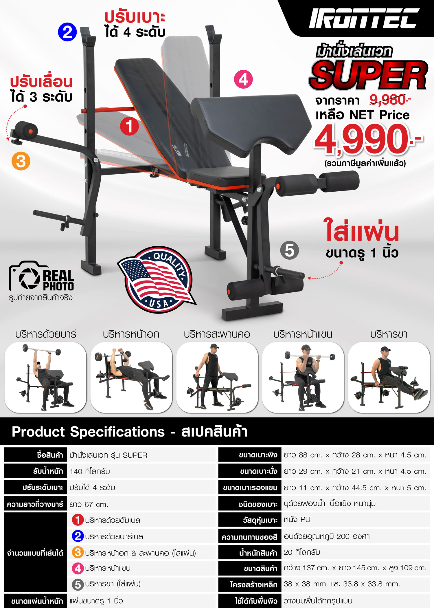 หากสังเกตุในเว็บไซต์ของเรา เราไม่จำหน่ายสินค้าอย่างอื่น เราไม่ได้จำหน่าย ลู่วิ่ง จักรยาน หรือ อุปกรณ์คาร์ดิโอ เราจำหน่ายแต่อุปกรณ์สร้างกล้าม สำหรับใช้ที่บ้าน และใน ฟิตเนส นี้คือสิ่งที่เราถนัด ..เพราะเราคือตัวจริงเรื่องอุปกรณ์สร้างกล้าม