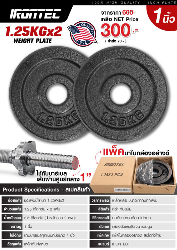 แผ่นน้ำหนัก 1.25 กิโล x2 แผ่น (รูขนาด 1 นิ้ว)