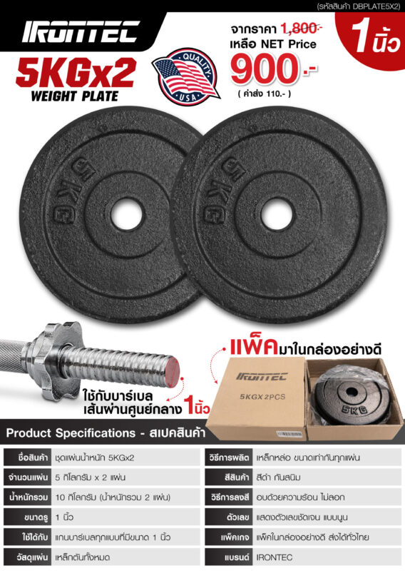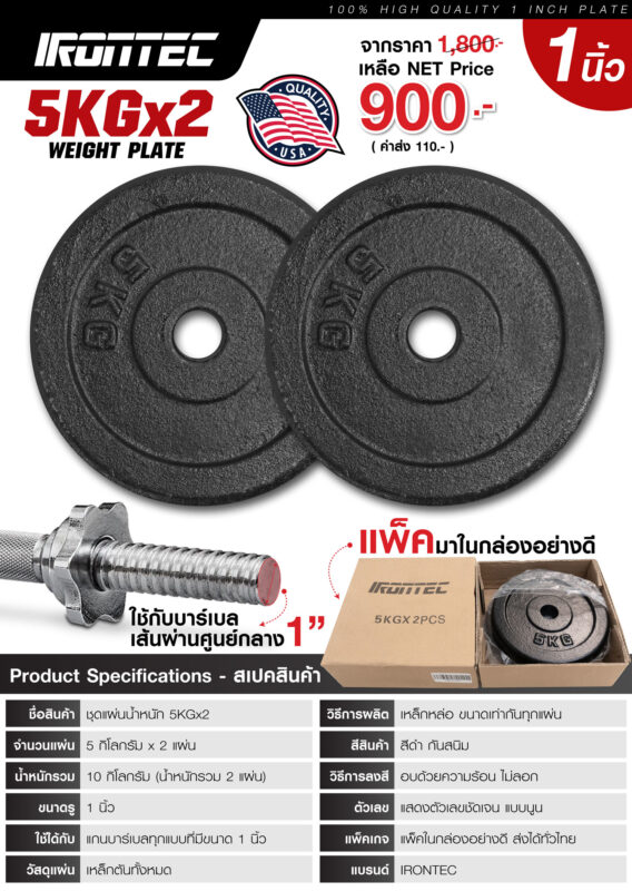 แผ่นน้ำหนัก 5 กิโล x2 แผ่น (รูขนาด 1 นิ้ว)