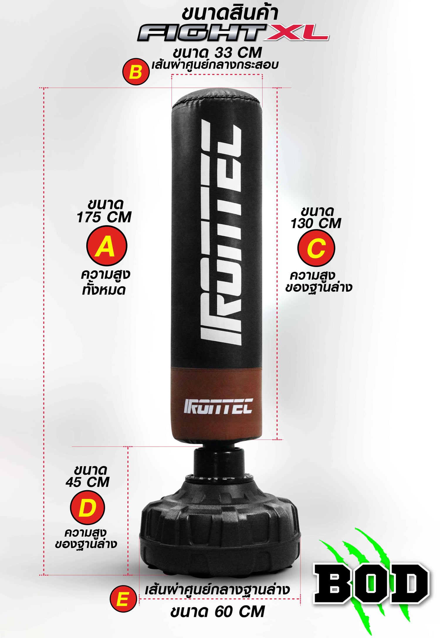 จุดเด่น FIGHT XL อยู่ที่ความอ้วนของกระสอบ 33cm ความสูงเท่าคนจริง 175cm และฐ่านล่างที่กว้าง 60cm